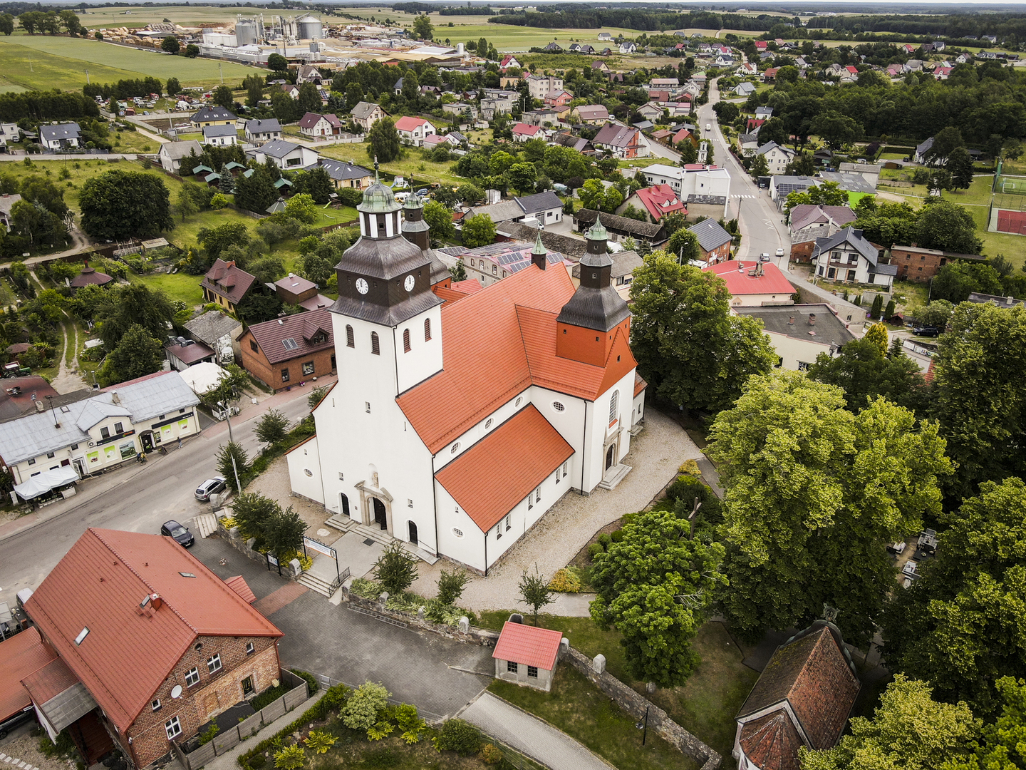 Kościół w swojej architekturze nawiązuje do modelu poprzedniej świątyni (1728 r.), która stał do 1894 r. i została rozebrana ze względu na zły tan i niewystarczającą liczbę miejsc dla wiernych. Nowy kościół powstał dzięki ówczesnemu proboszczowi parafii ks. Janowi Fethkemu i nawiązywał bezpośrednio do modelu starej świątyni. Razem z kościołem nieodłączną całość tworzy zabytowky cmentarz, który swój współczesny wgląd uzyskał w okresie międzywojennym, za czasów ks. Wryczy.