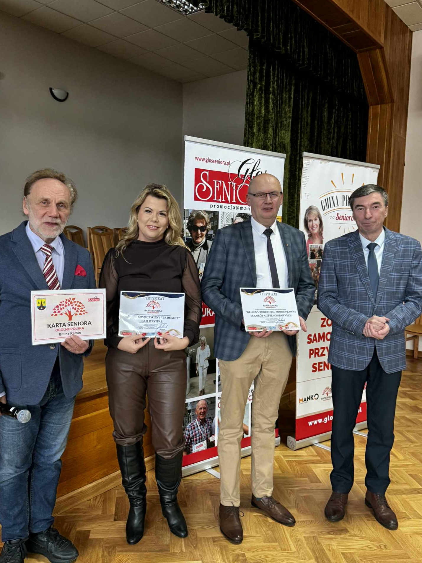 W ramach polityki prosenioralnej samorząd Gminy Karsin jako pierwszy w Powiecie Kościerskim przystąpił do Programu „Gmina Przyjazna Seniorom”. W Polsce w Programie uczestniczy już ponad 320 powiatów, gmin i miast. W dniu 14 stycznia w Domu Kultury w Karsinie odbyło się spotkanie, podczas którego odbyło się oficjalne przystąpienie do Programu. Licznie obecni seniorzy mogli wysłuchać ciekawej prelekcji poświęconej bezpieczeństwu seniorów, którą prowadził ambasador magazynu "Głos Seniora" dr Marek Pilch. Po prelekcji obecny na spotkaniu Wójt Gminy Karsin Roman Brunke symbolicznie wręczył pierwsze 5 kart najstarszym uczestnikom obecnym na sali tj. Renacie Nowackiej, Irenie Czapiewskiej, Ryszardowi Szumigajowi, Janowi Meggerowi oraz Stefanowi Jażdżewskiemu. Wójt odebrał też certyfikat "Gmina przyjazna Seniorom" oraz certyfikat przystąpienia do kampanii „Bezpieczny Senior – Stop manipulacji, nie daj się oszukać”. Gmina Karsin na razie sfinansowała zakup 500 sztuk takich kart. Jeżeli jednak zapotrzebowanie będzie większe, w kolejnych latach liczba kart może zostać zwiększona. Przystąpienie do Programu oraz zakup kart kosztował gminę 9225 zł. Warto nadmienić, że w 2026 r. samorząd na politykę senioralną przeznaczy łącznie przeszło 400 tys. zł.
