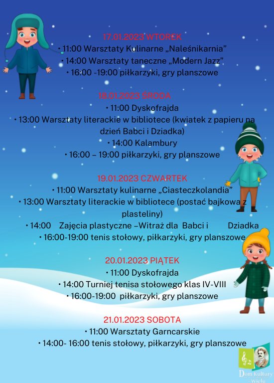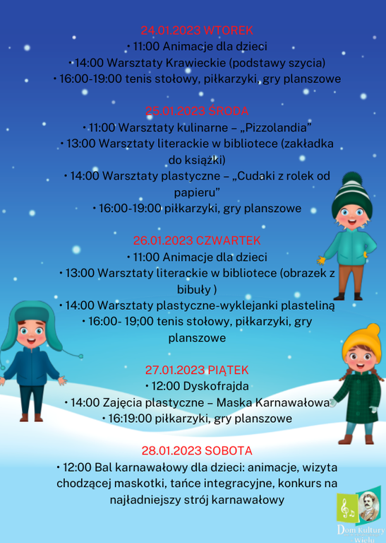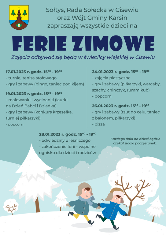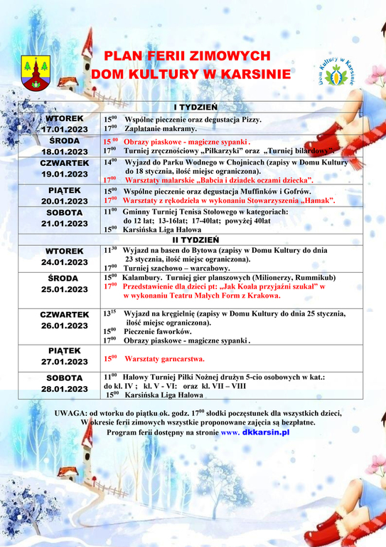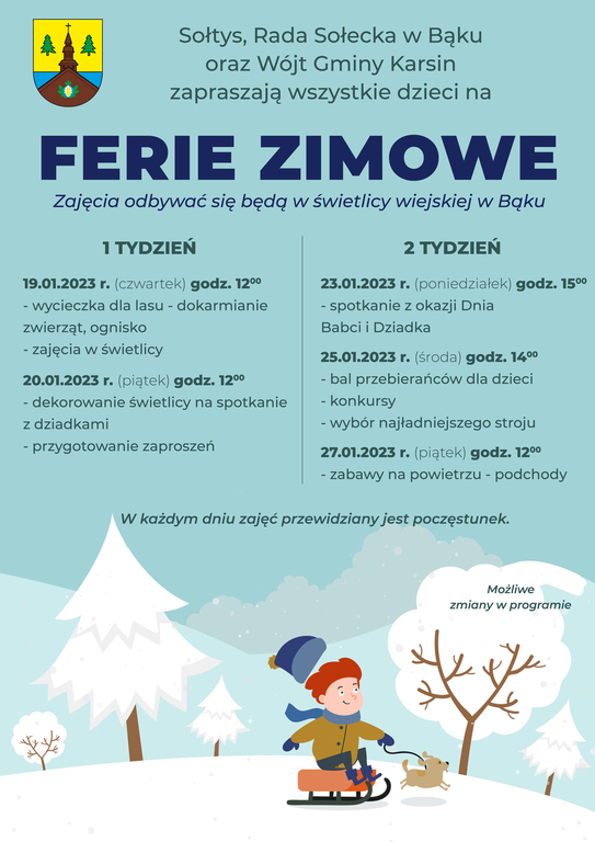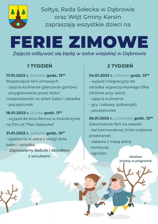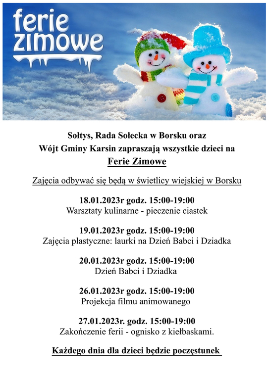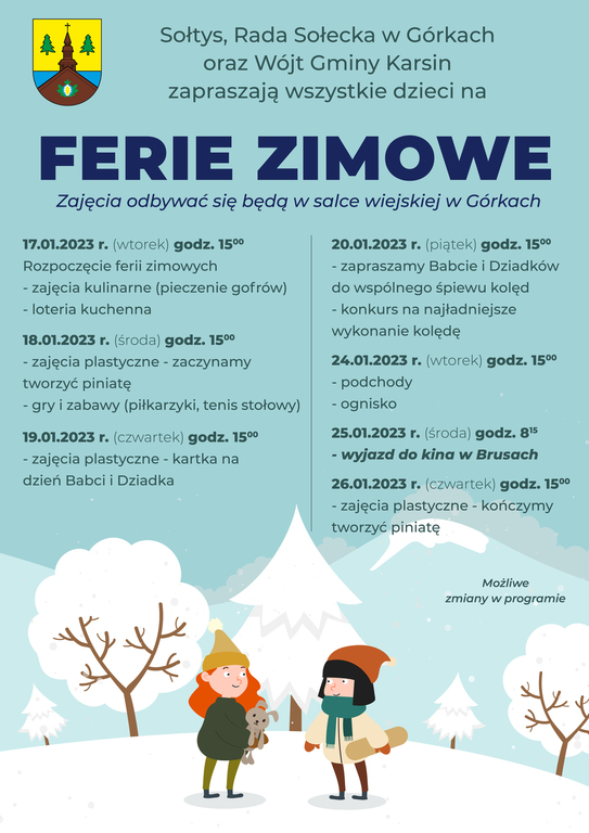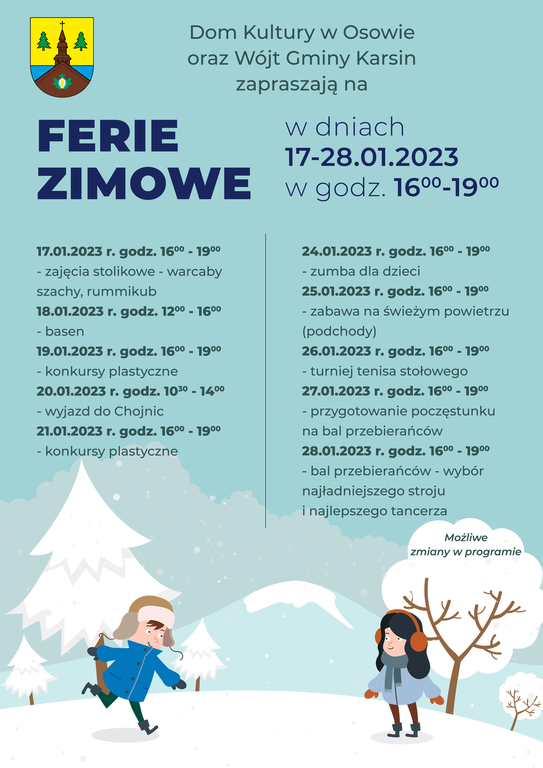Programy zajęć podczas ferii zimowych w Gminie Karsin