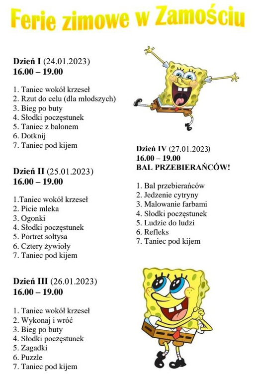 Programy zajęć podczas ferii...