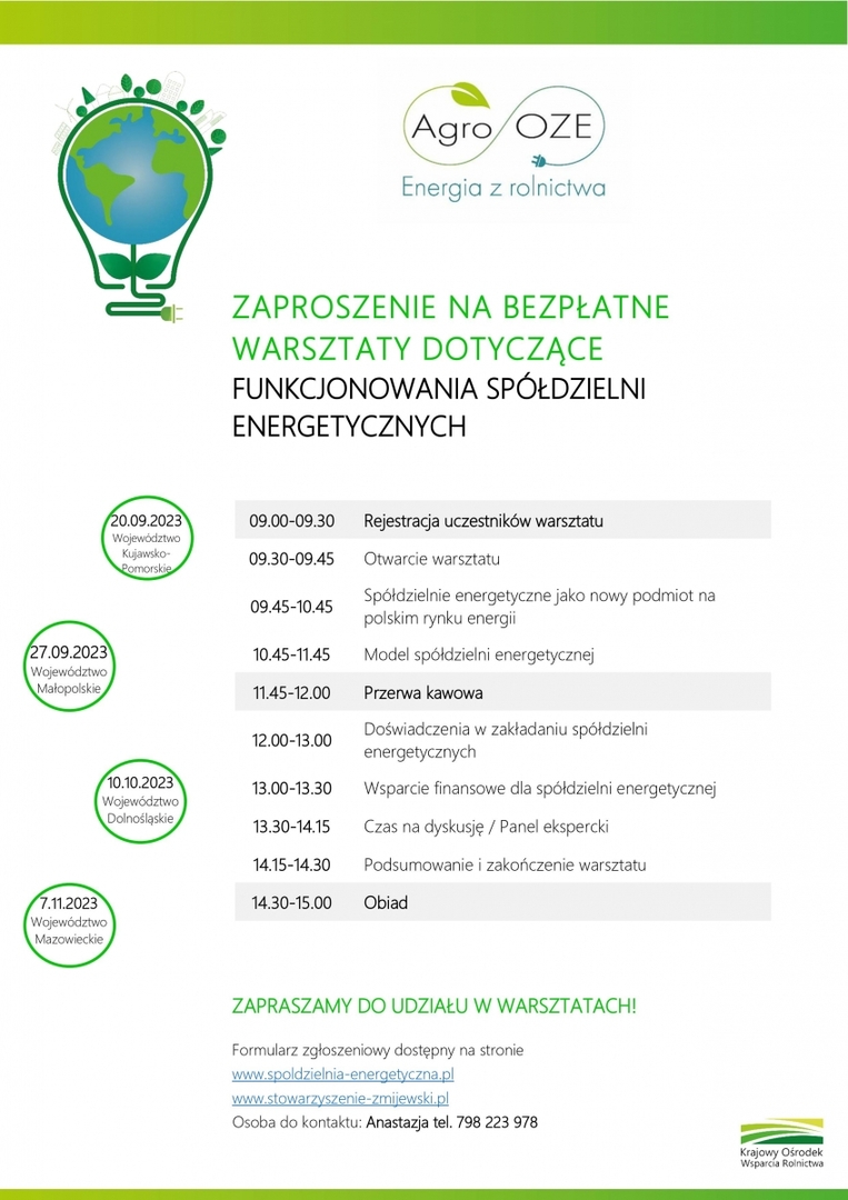 w imieniu Krajowego Ośrodka Wsparcia Rolnictwa oraz Stowarzyszenia im. prof. Żmijewskiego - wykonoawcy serdecznie zapraszamy rolników i przedsiębiorców rolnych z terenu gminy Karsin na bezpłatne warsztaty. Warsztaty organizowane są stacjonarnie w Kujawsko-Pomorskim Ośrodku Doradztwa Rolniczego (KPODR) w Minikowie w dniu 20 września 2023 r. (środa) w godzinach 900-1500.