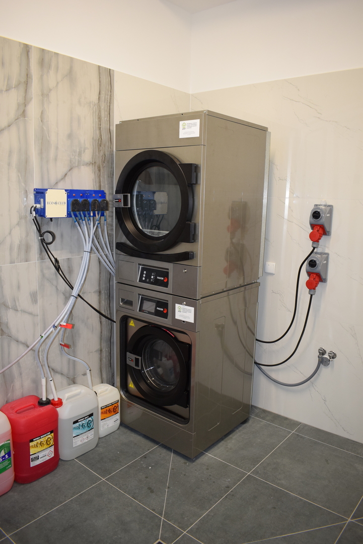 W skład zestawu wchodzą pralnico - wirówka, suszarka, dozownik oraz detergenty. Pralnica jest wyposażona w programy prania i impregnacji. W połączeniu z automatycznym systemem dozowania środków piorących zapewnia optymalny proces czyszczenia i impregnacji strażackiej odzieży specjalnej. Ścieki powstałe w wyniku użytkowania podlegają oczyszczaniu mechanicznemu oraz chemicznemu za pomocą wbudowanych filtrów, a następnie kierowane do oczyszczalni ścieków.